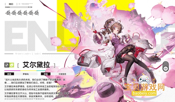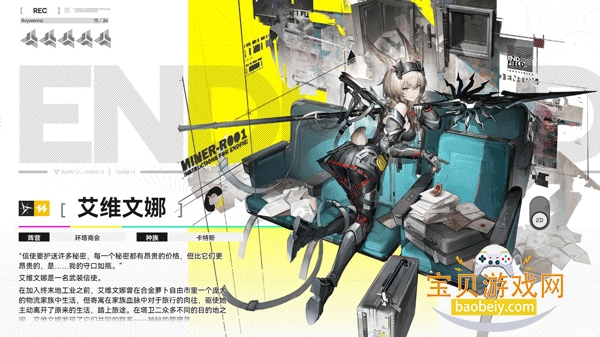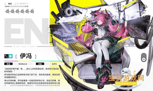 神秘又冷淡的女性,拥有广阔的学识和出众的信息技术天赋,由院长引荐进入终末地工业。定位是远程输出,擅长科研类道具和数据支持,能在远处造成致命伤害。