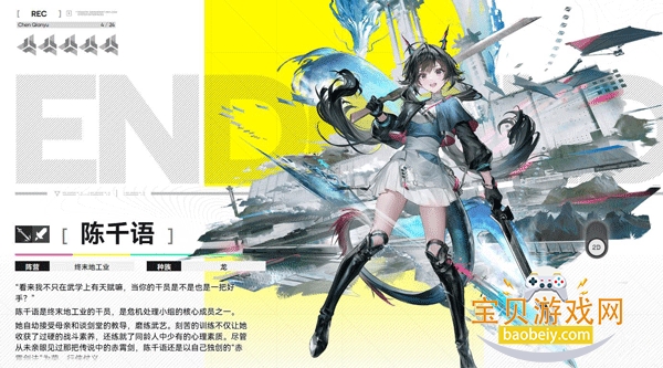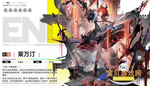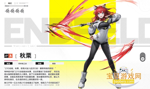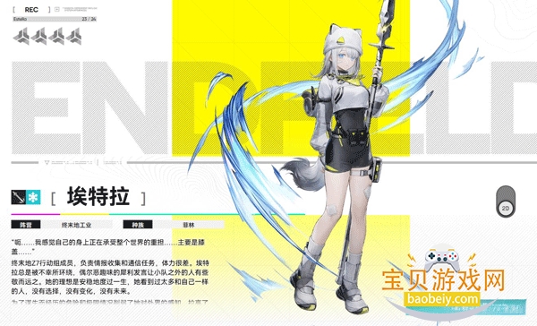 终末地组织的特勤成员,从小跟着母亲学武艺,战斗素养过硬,性格开朗阳光。作为副C角色,用近战刀作战,不用长时间留在战场,就能对周围敌人造成致命伤害,适配多种阵容。