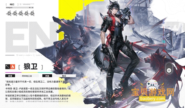 裂地者狼群氏族的成员,常年漂泊在外,见过人性的黑暗面,心智成熟冷静。擅长侦察作战,能清楚掌握周围情况,用双手剑攻击,伤害频率高,还能和敌人临时协作完成任务。