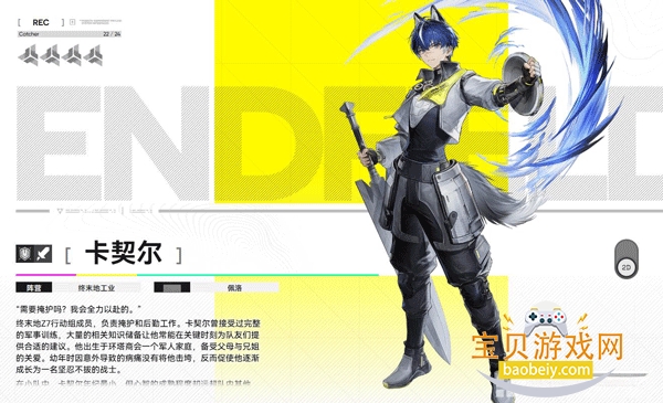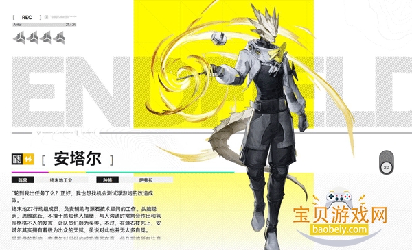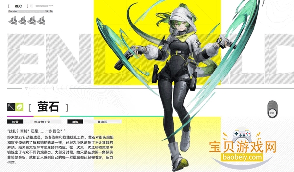 没有家人的游人,在奥里莎师者的引荐下加入终末地,担任外勤干员,负责前线探索和情报传递等工作。