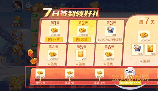 1、登陆签到。每日登陆签到都可以领金币,且累计一定天数也可领金币,一天比一天的金币多