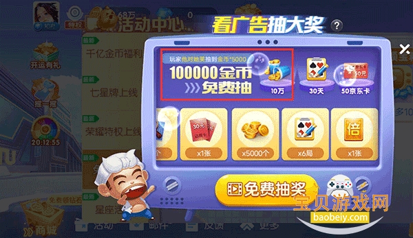 2、看广告抽大奖。每看一个广告视频都会给你抽奖机会,能抽到金币、记牌器和京东卡等