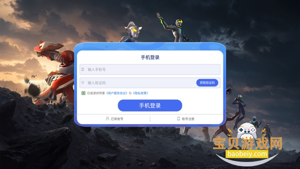 1、首先打开奥特曼光之战士手机版,输入手机号获取验证码并完成注册登录;
