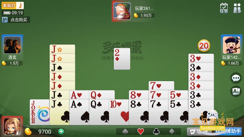 如果末游手中有两张大王,则可选择抗贡,赢家先行出牌。
