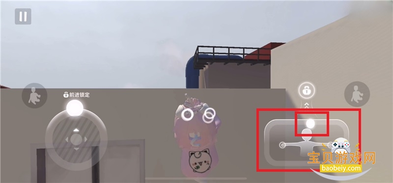 1、首先我们需要将双手举高,左边按钮固定住向前进。