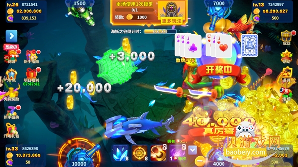 4、人鱼宝藏:附带人鱼宝藏,击杀人鱼BOSS后开启转盘抽奖