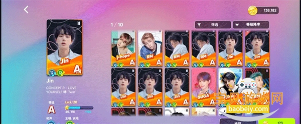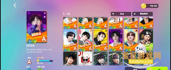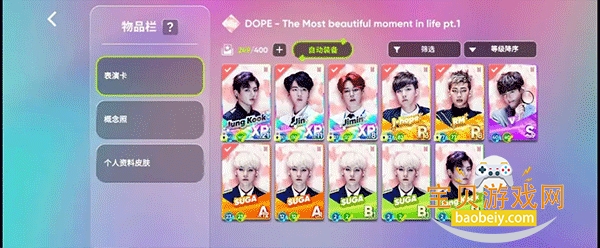 比如我这里Boy With Fun形成这样阵容的原因,就在于bang bang con和花1 dope的主题卡都可以演出Boy With Fun,但Suga和V的卡片在花1 dope中的级别低于在bang bang con中的级别