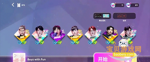3、选择一个要一起玩的偶像组合,现有四个组合可以选择;