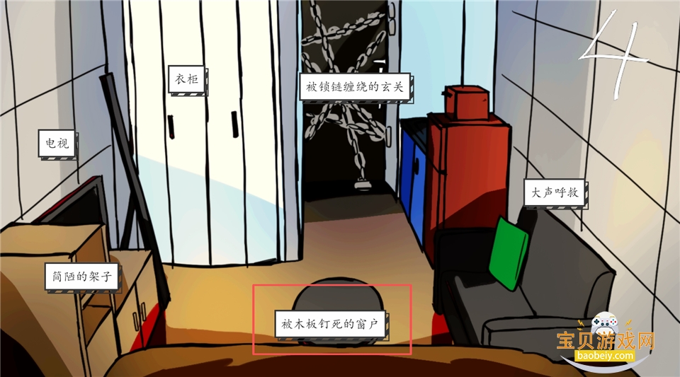 1、在调查这里选择【衣柜】获得锤子后,不选窗户,其他都能选。