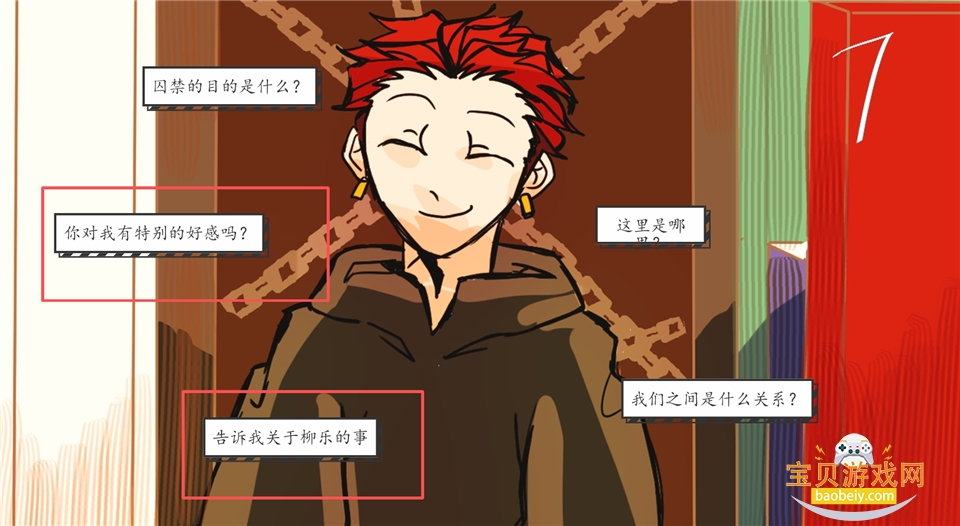 2、在三个问题这里,【你对我有特别的好感吗】和【告诉我关于柳乐的事】必须选择,剩下一个随便选择。