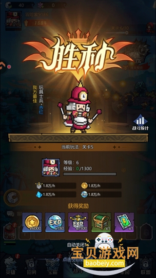5、成功完成关卡后,可领取金币、经验值以及宝箱等多种通关奖励。