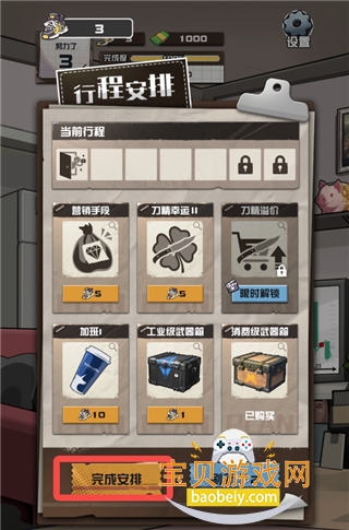 6、根据收益与增益合理组合行程,确认无误后点击【完成安排】。