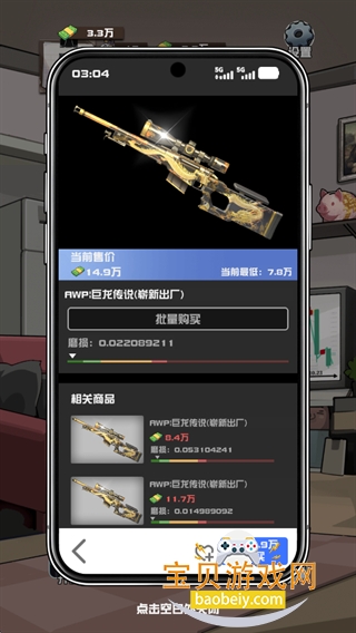 《我在CS卖饰品》的核心玩法围绕着饰品交易展开,玩家需要通过合理的策略来获取利润。游戏中的饰品价格会随时间波动,模拟了真实市场的起伏变化。这要求玩家具备一定的市场分析能力,能够把握出手时机,避免盲目跟风或错误判断导致资金链断裂。