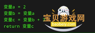 变量可以进行算术运算,变量可以赋值给其他变量。下面的例子,把变量a赋值为2,然后把变量a赋值给变量b,然后把变量b+3赋值给变量c,然后程序输出变量c,最终输出结果是5。