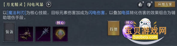 以[魔法利刃]为核心技能,目标元素伤害加成为闪电伤害,以叠加电弧转化伤害的效果组合为辅助增伤手段。