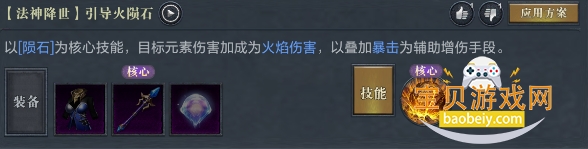 以[陨石]为核心技能,目标元素伤害加成为火焰伤害,以叠加暴击为辅助增伤手段。