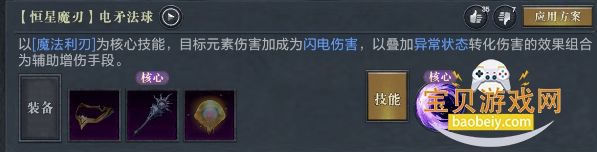 以[魔法利刃]为核心技能,目标元素伤害加成为闪电伤害,以叠加异常状态转化伤害的效果组合为辅助增伤手段。