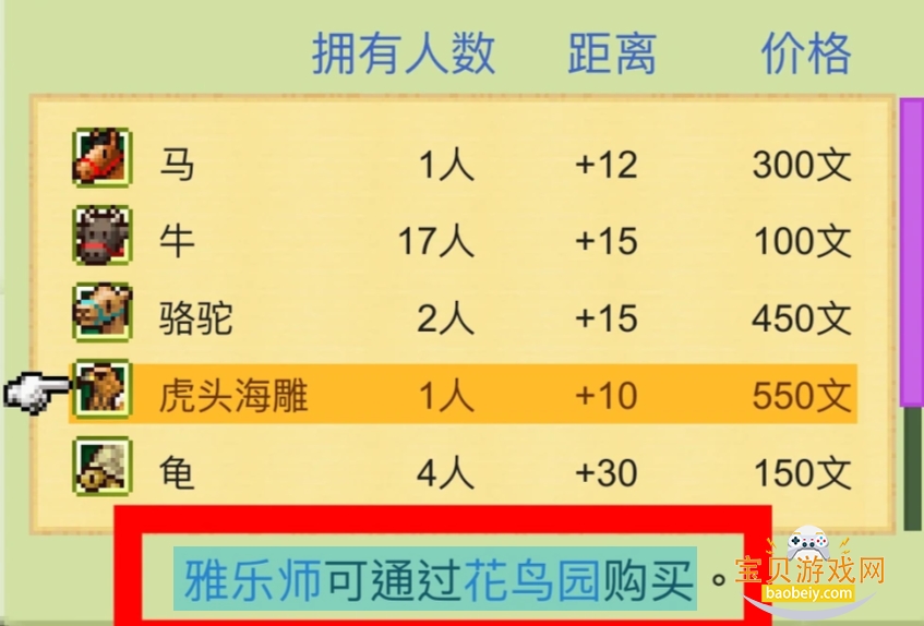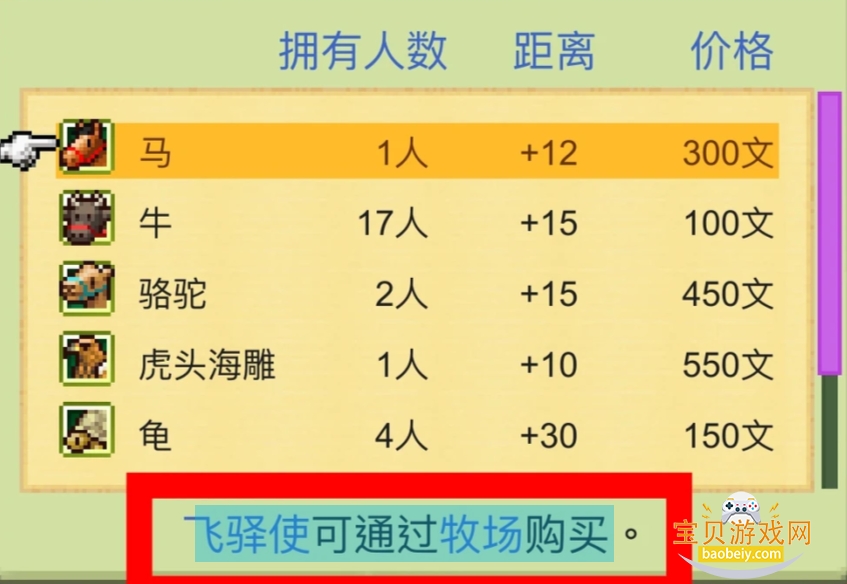 飞驿使可通过牧场购买。