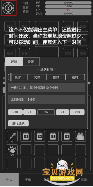 5、这个不仅能调出主菜单,还能进行时间迁跃,当你发现基地资源过少可以拨动时间,使其进入下一时间