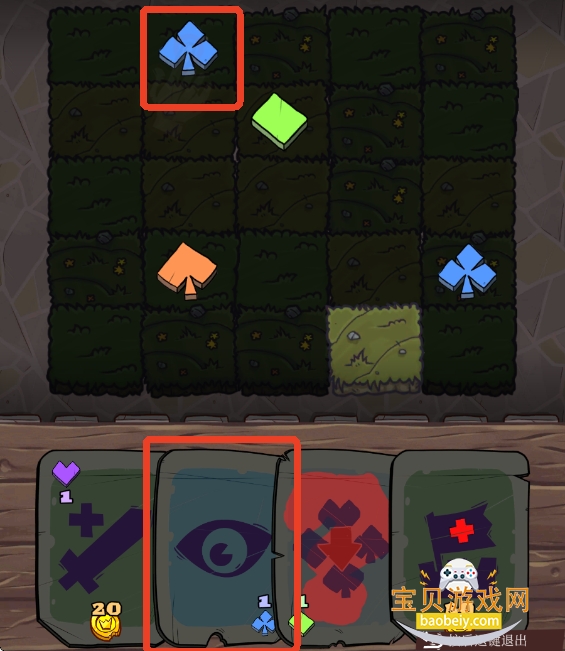 2、点击以拾取蓝色符文这样你就可以使用透视卡了,以驱散黑雾来探索房间的每个区块并获得金币。