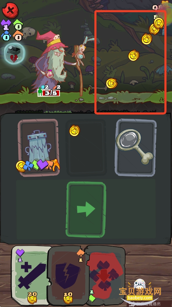6、必须治愈才能战斗,使用治疗卡牌来回复生命。