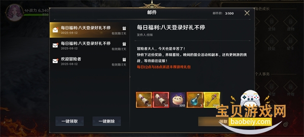 查收邮件获取丰厚游戏礼包 ,可获得资源为前期的战力打下基础