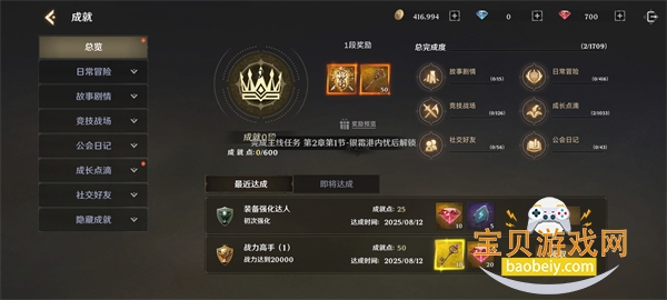 完成成就系统里的各类任务,获取奖励用于提升战力