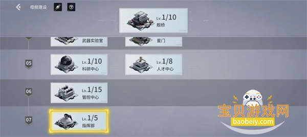 舰船上阵位随母舰建设中的指挥部等级提高而解锁。
