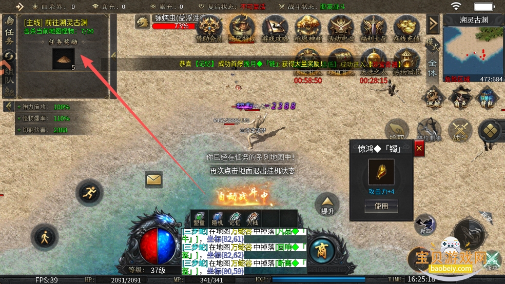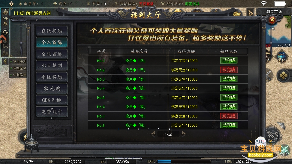5、击杀BOSS首爆装备,还有额外元宝资源等待领取,体验从打怪到收益的成就感。