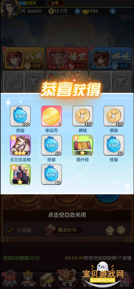 4、金蛋概率:48%经验,20%装备,20%铜币,10%幸运币,1%幸运三选一,1%封神秘宝。