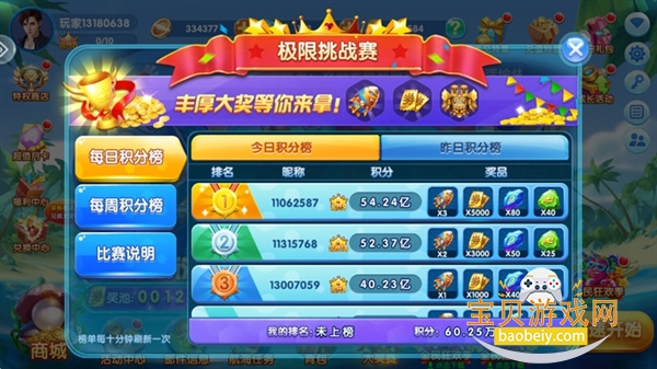 2、极限挑战赛积分需大于等于500万才可参榜。