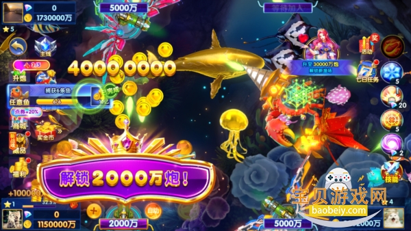 7、玩家在经典模式中告别一人独战,可四人共享一片海域,相互合作也相互竞争,配合独创的三房约局模式,渔友们能随时随地邀请好友进行游戏,在百炮齐发同时还能使用语音聊天,游戏社交两不误。