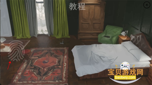 1、打开游戏,先跟着指纹来进行操作,获得打开这个房间的钥匙,拿着手电筒走出房门。