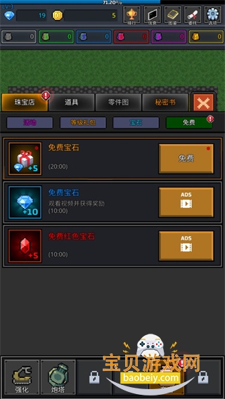 2、当我们有一定的金币之后,就可以去强化伤害和黄金的增加,以及炮塔点的增加;