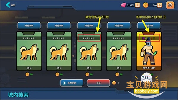 在城内搜索里,你可以刷新到新的角色和旧的角色,新的角色会加入你的队伍,而旧的角色则会在原有的等级上+1级。