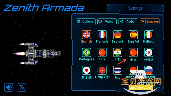 1、进入天际舰队游戏后,先点击左下角的“语言”选项。