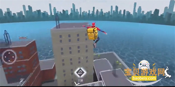 1、进入游戏后,可以点击右边的按键,直接发射蛛丝,这样就能在高楼大厦之间穿梭。