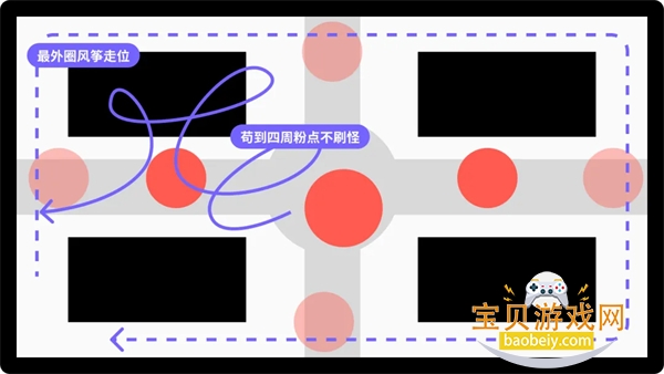如果感觉刷广告实在太猥琐,那么可以试试秦王绕柱的方式。这个方法依靠游戏内的刷怪逻辑,游戏会在中间地区和四方路的尽头随机刷怪,但是到了一定数量后,四方路会停止刷怪,也就是说最外侧一圈是相对安全的。