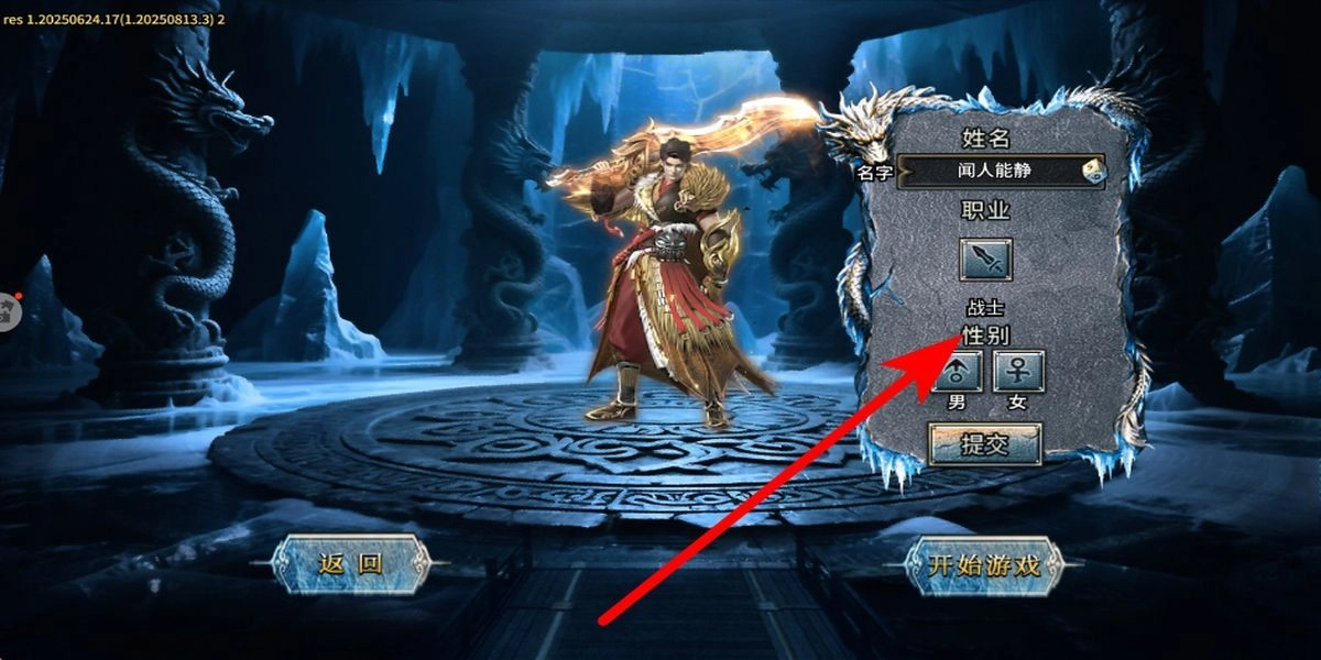 2、在角色创建页面,输入心仪名字,然后选择性别,在确认后提交,完成角色的创建,即可操控角色踏入充满挑战与机遇的游戏世界。