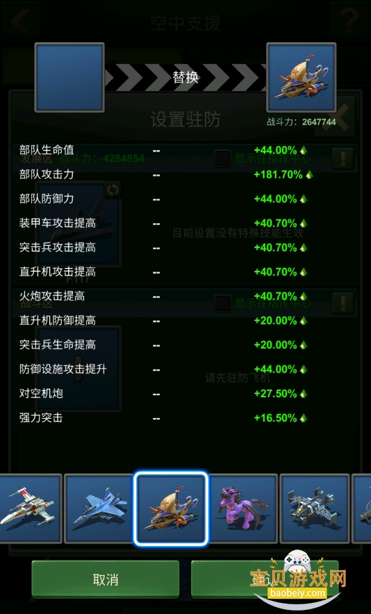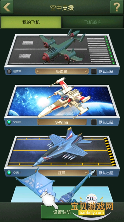我们知道每架飞机都拥有强大的战斗属性亦或是发展属性,出征时我们会选择其中一架飞机来提高我们的作战能力。那么,如何使飞机参与到指挥部防守战斗?如何使飞机的发展属性生效?这就需要通过飞机驻防来实现了。