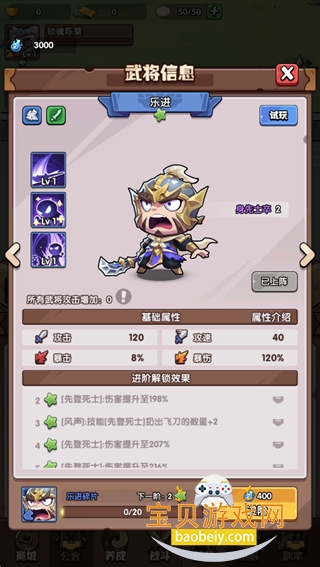 3.策略战斗,多样致胜:猎杀小兵收集金币升级武将,每个关卡有不同精英boss和惊喜。选择正确上阵策略,不断完善武将小队以争取胜利。