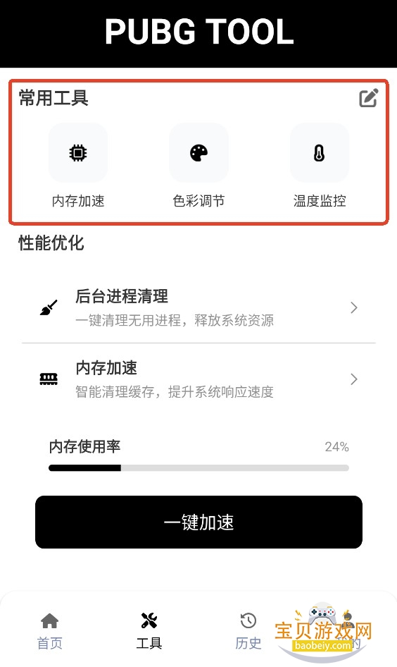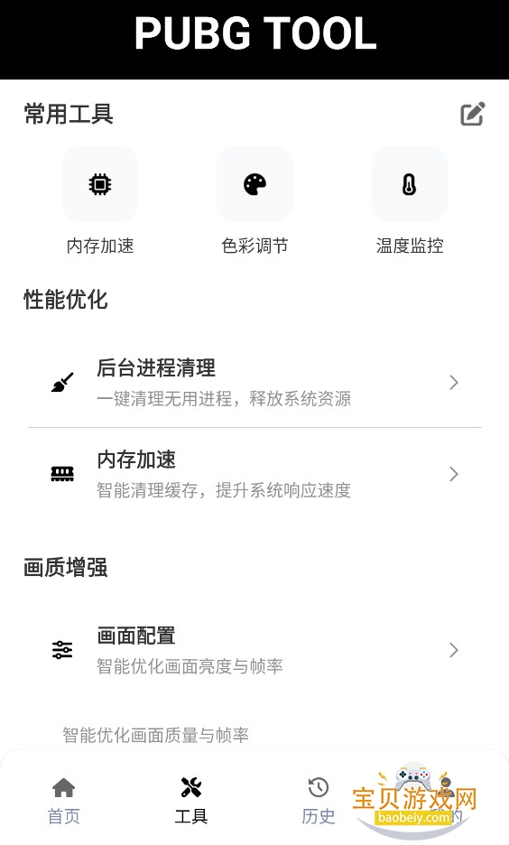点击之后我们就会跳转到工具界面,在这里我们可以设置性能、画质、系统等。