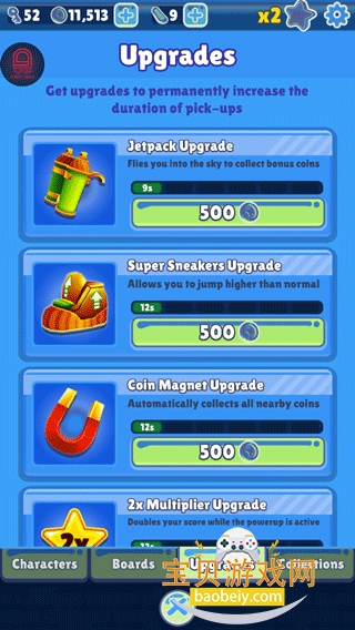4、道具是帮助你得分的好帮手,有磁铁、跳鞋、撑杆、飞行背包、双倍得分,每一款都有不同的功能。