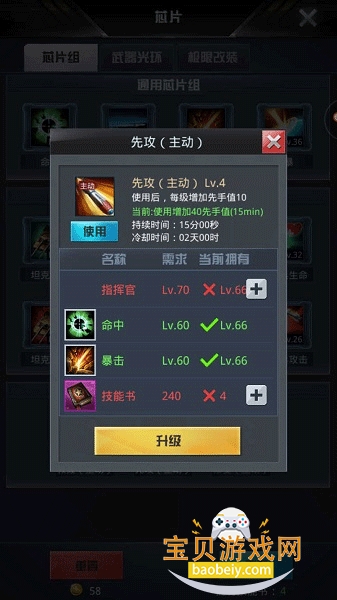 第二、说到战役:那就不得不说前期用于刷关卡的兵种等级了。我主张一刀流,走导弹路线,科技、芯片,配件等,都以导弹为主。且重要的是。等导弹出橙色等级的车,再反补升也不晚,但除此之外,还必须要发展副兵种 —— 坦克。导弹的攻+坦克的血,攻防合一,才是正理。