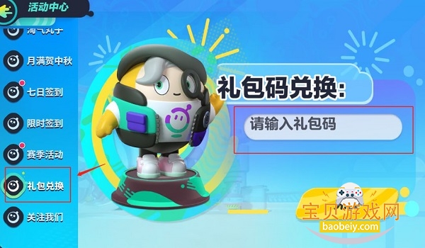 2、进入【活动中心】界面后,拖动最左边活动栏往下划到最底面,点击倒数第二的【礼包兑换】按钮后,在兑换码框内输入兑换码领取即可。