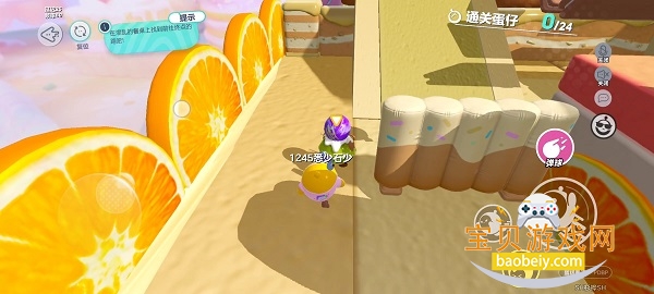 不能进果汁里面,但在柑子旁边的板子上可以走