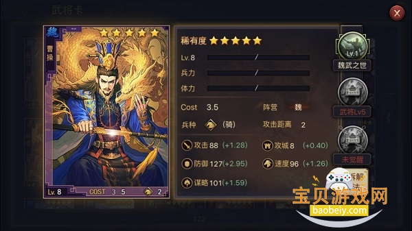 2) 第二个战法格开启:武将等级达到LV5,第二个战法格开启。以武将卡为素材拆解战法,可以获得其他武将的强力战法。