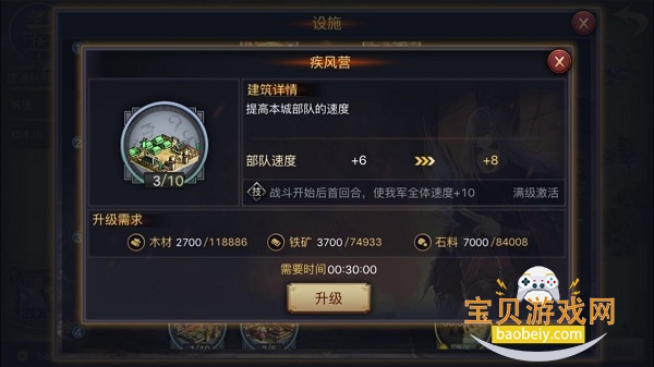 3、 提高部队属性——疾风营、铁壁营、军机营、尚武营;