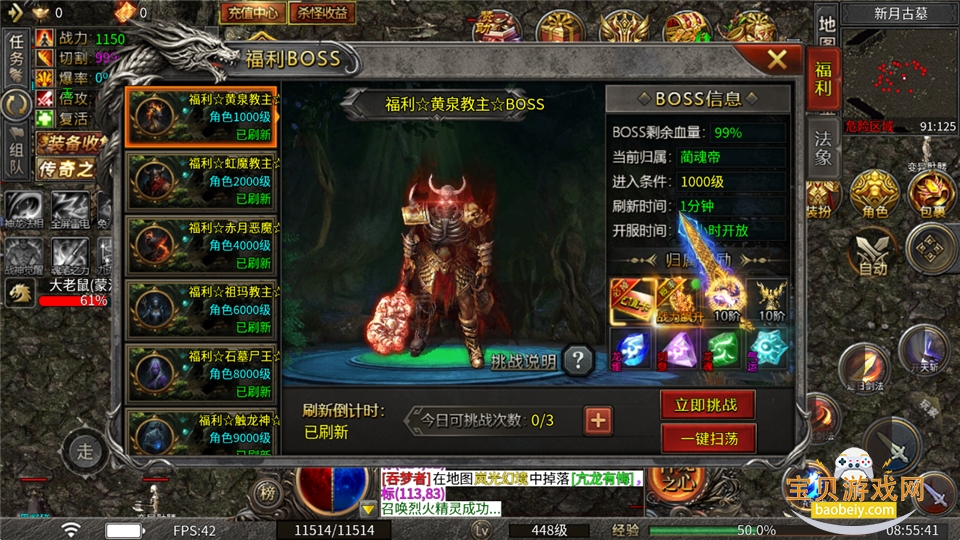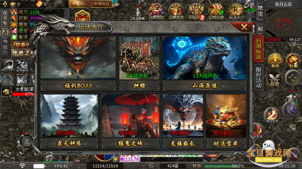 福利BOSS挑战(3次)、空闲挂机刷图囤材料,不做复杂玩法。