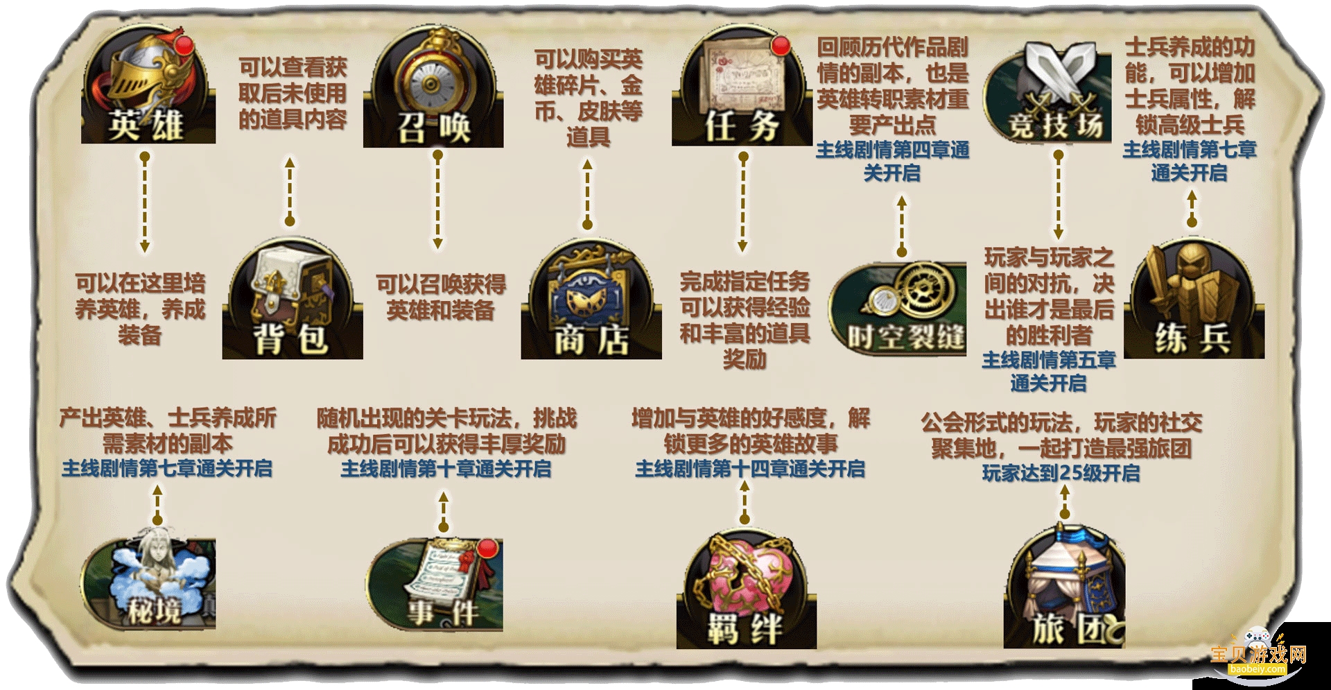 1、召唤了心爱的英雄当然要好好培养好感,羁绊之地就是英雄礼物的每日固定产出地,每天到这里努力战斗,为性感又能打的小姐姐们赢得礼物吧!